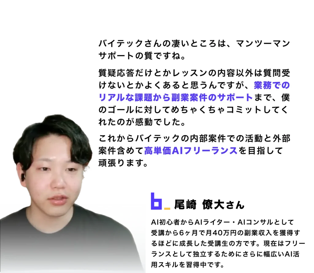 サポート環境は全て個別となっておりますので、未経験の方でも安心して質問できる環境となっております。