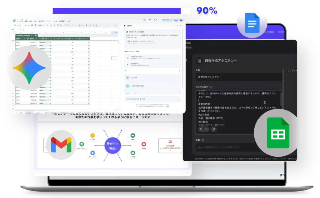 Geminiは、Gmail・ドキュメント・スプレッドシート・スライドなど、Googleツールとの連携が前提で設計されています。